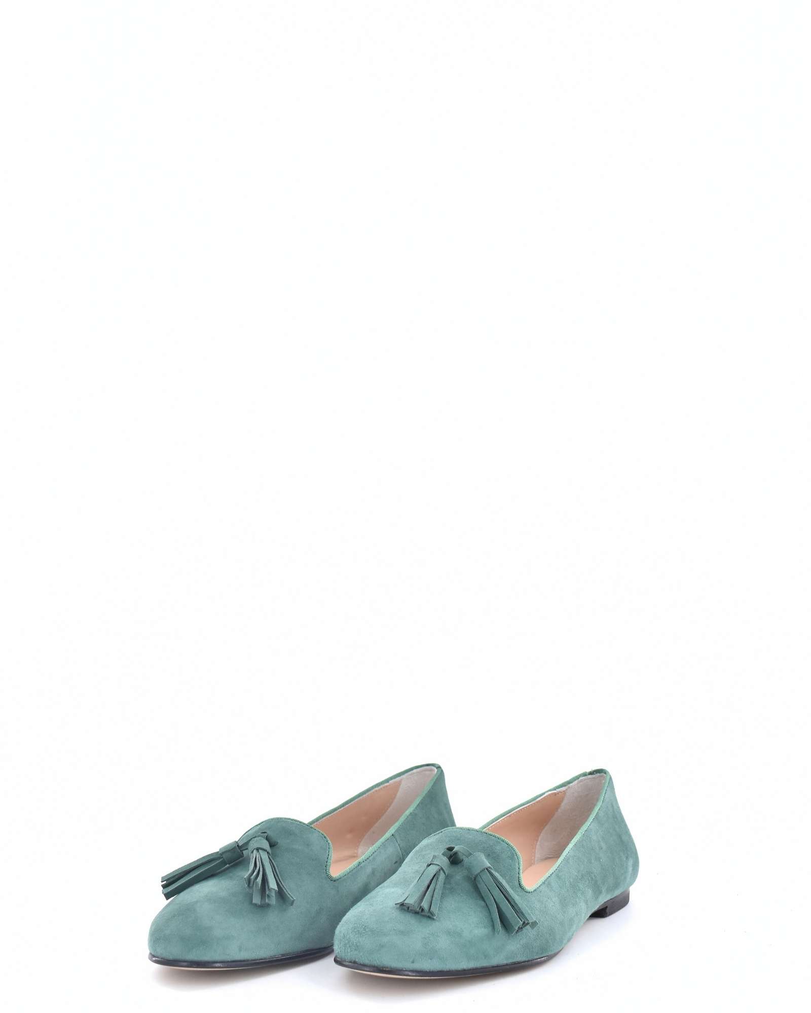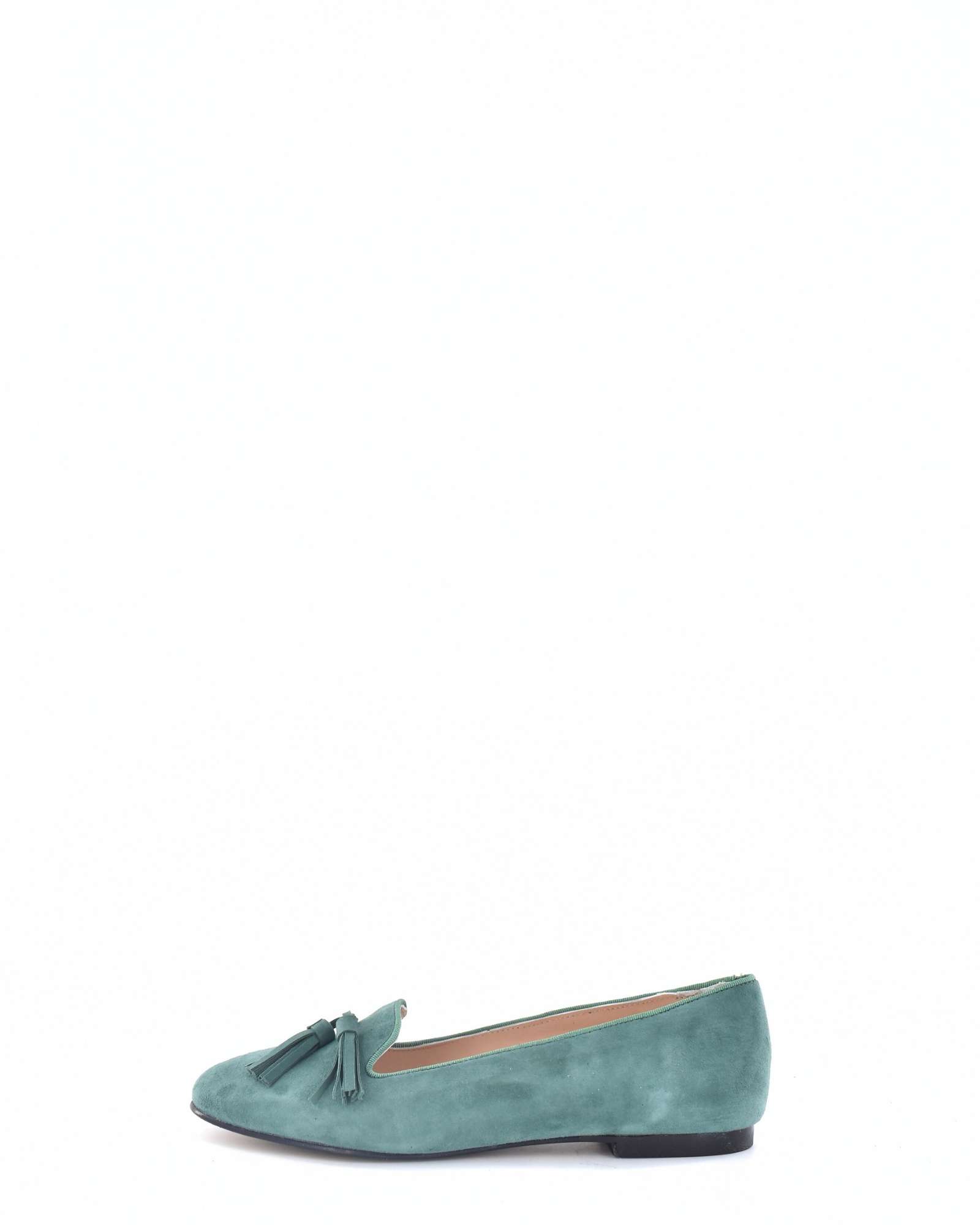 Mocasín en Ante con detalle de borlas, suela de goma y un tacón de entre 0 y 1 cm , perfecto para el día a día.