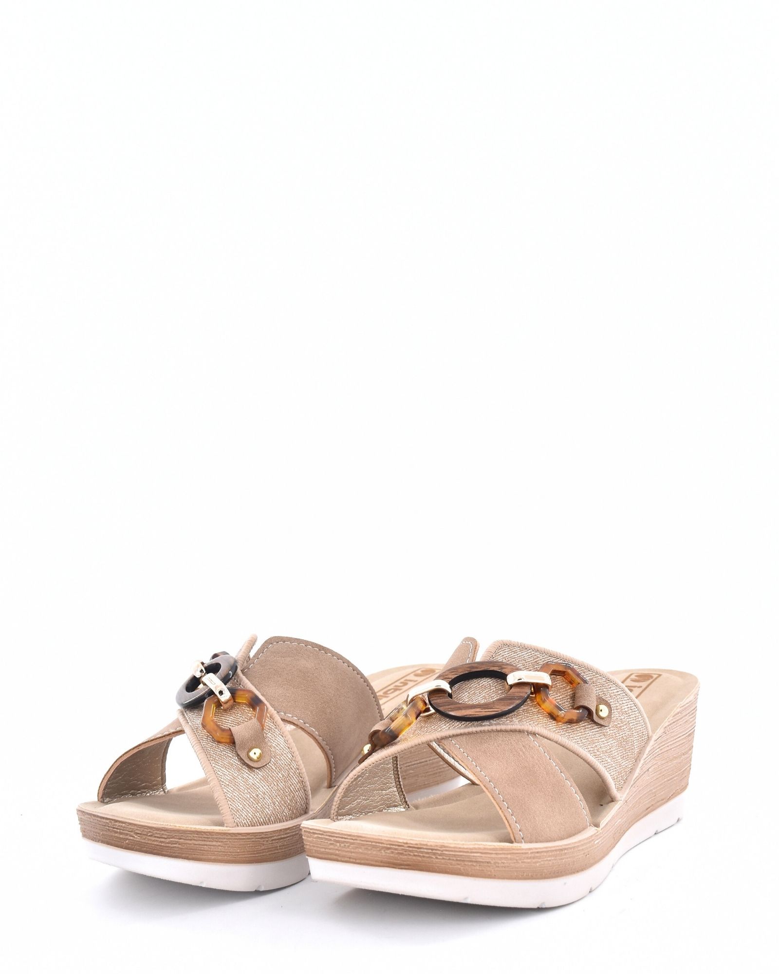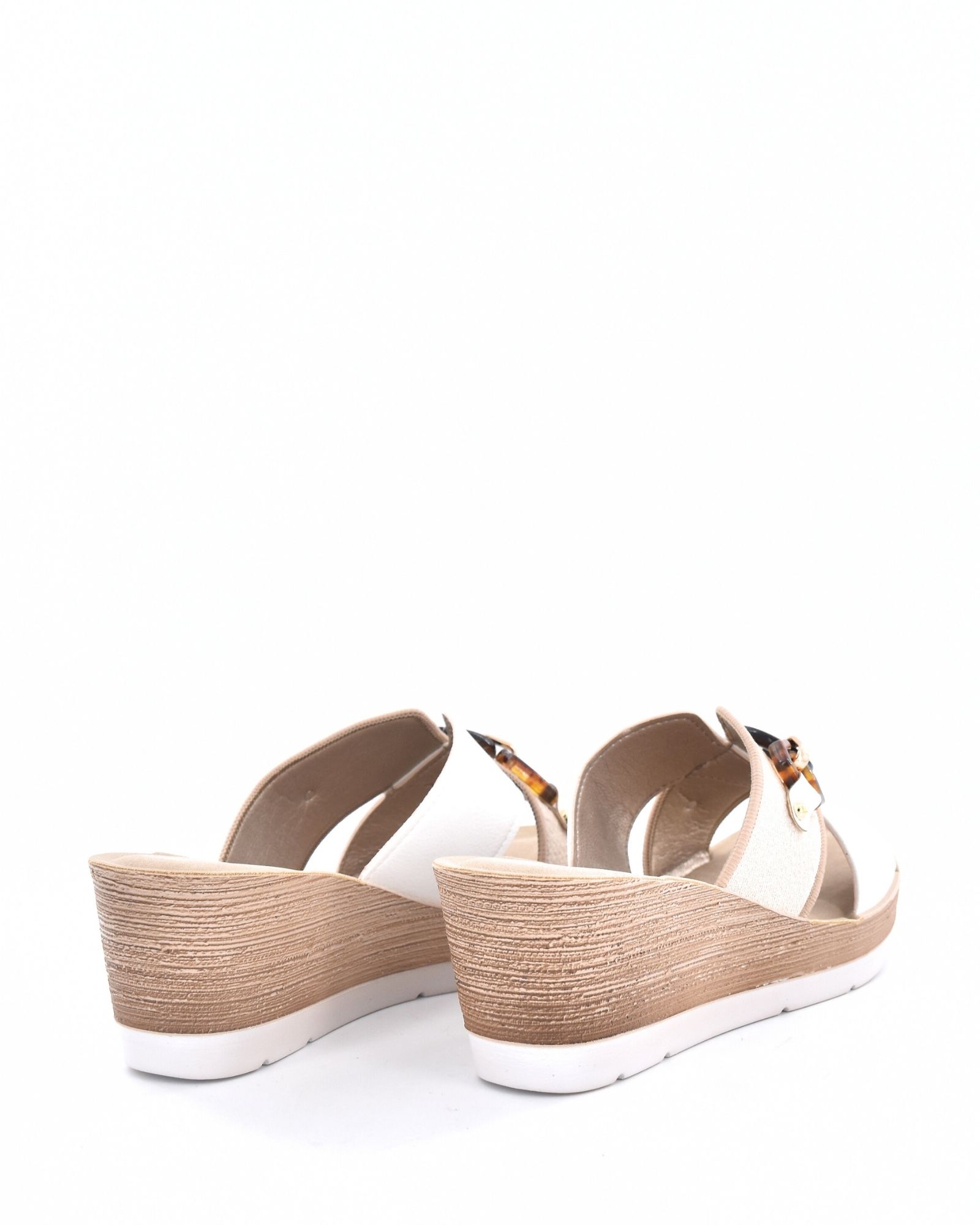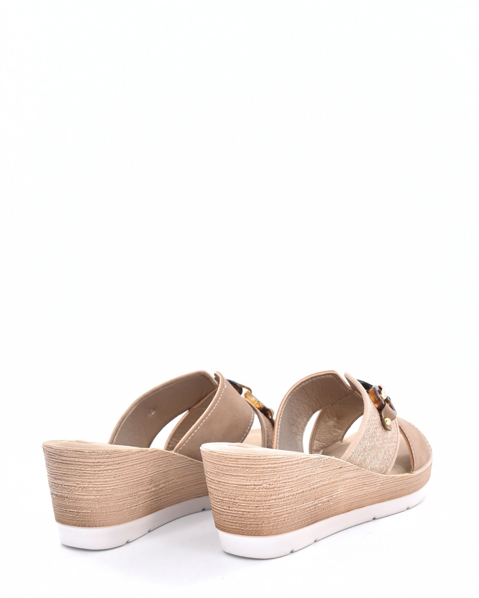 Sandalia confort con plataforma con tiras multicolor en tonos beige de piel,piso acolchado y suela antideslizante en goma.