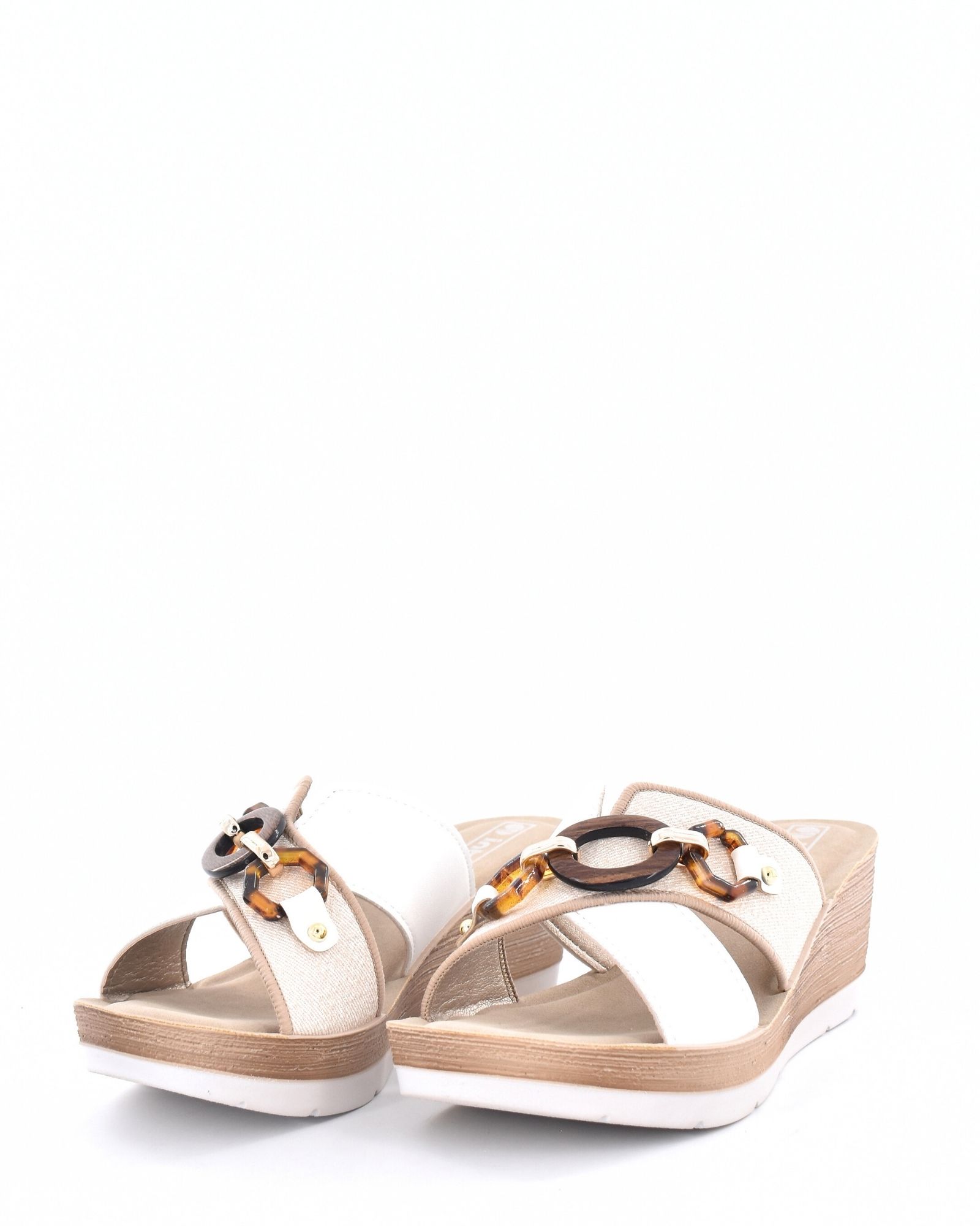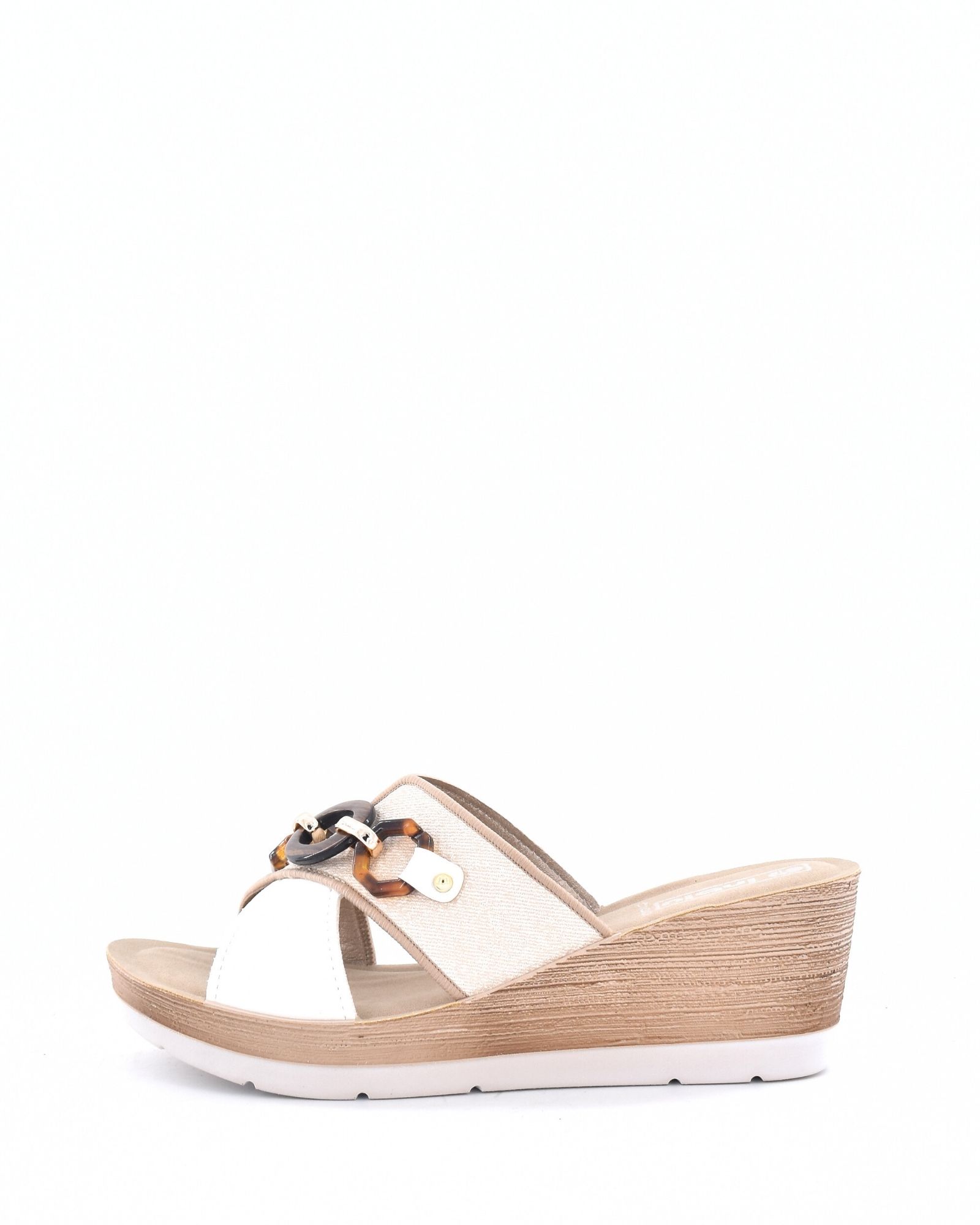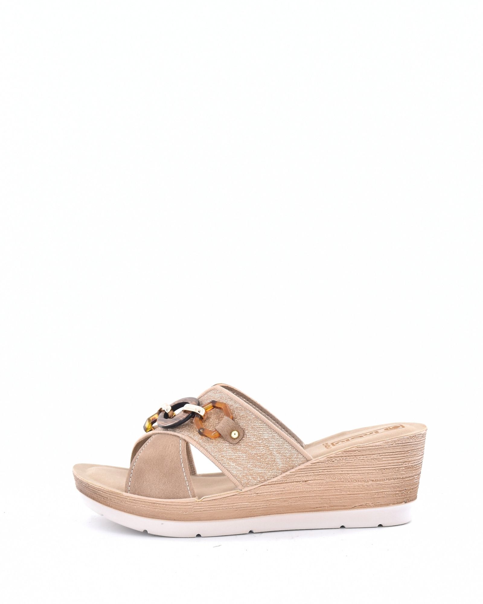 Sandalia confort con plataforma con tiras multicolor en tonos beige de piel,piso acolchado y suela antideslizante en goma.